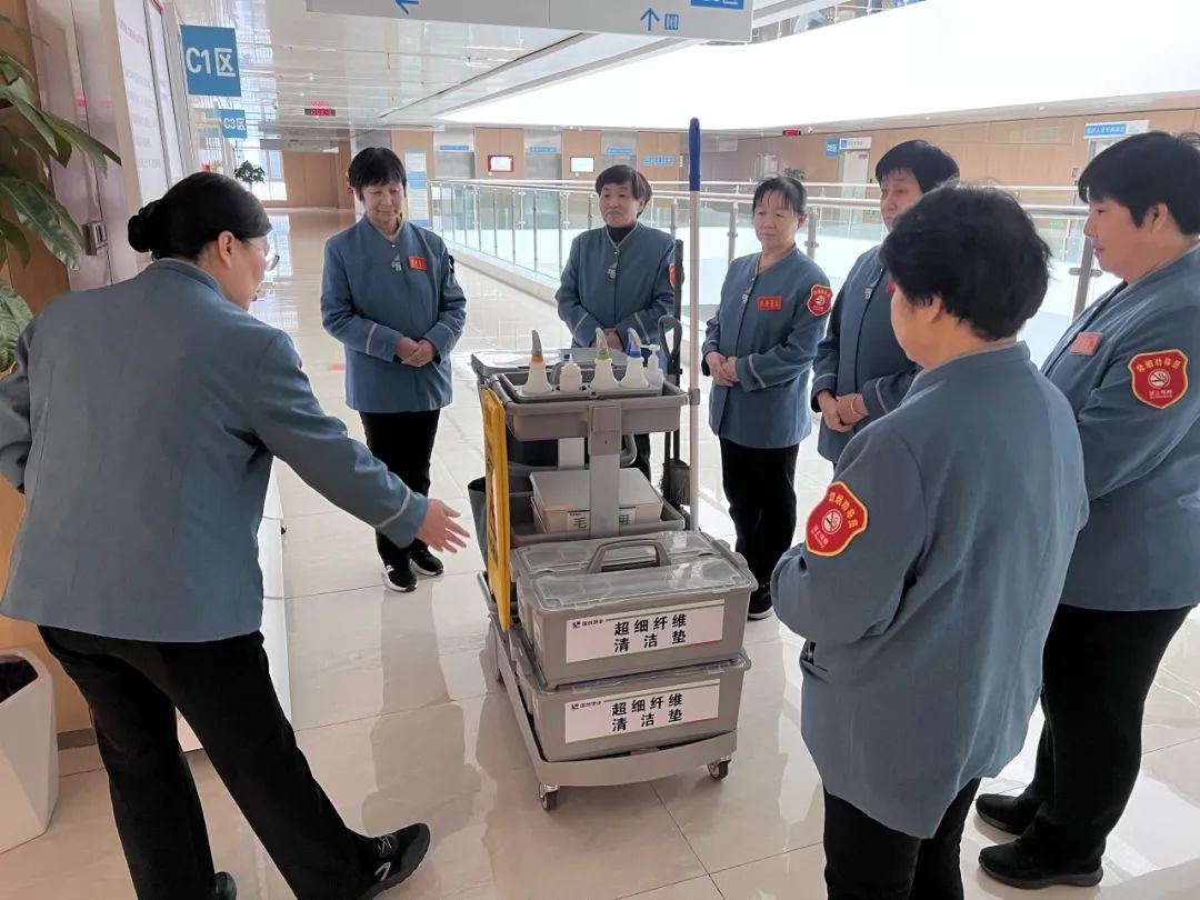 进场前三个月,永升团队多次实地踏勘,以一线城市三甲医院标准制定了保洁工具、工作车及员工培训标准化方案,全员接受标准化作业流程培训。进驻后,团队实施精细化的日、周、月、半年、年清洁计划,确保医院环境管理处于高标准面客状态。