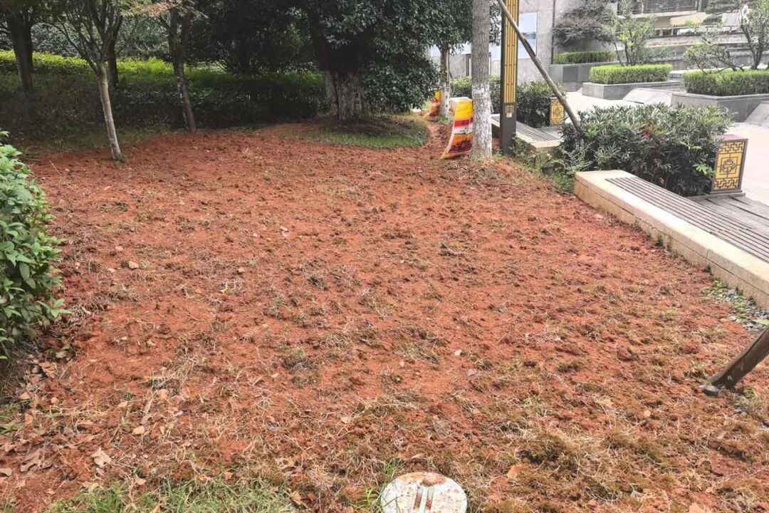 邵东印象小区十栋前坪受土壤、采光、通风等因素影响,养护效果不佳,黑麦草退化,杂草肆意生长,常现裸露的土地。刘紫韵看在眼里,计上心头。