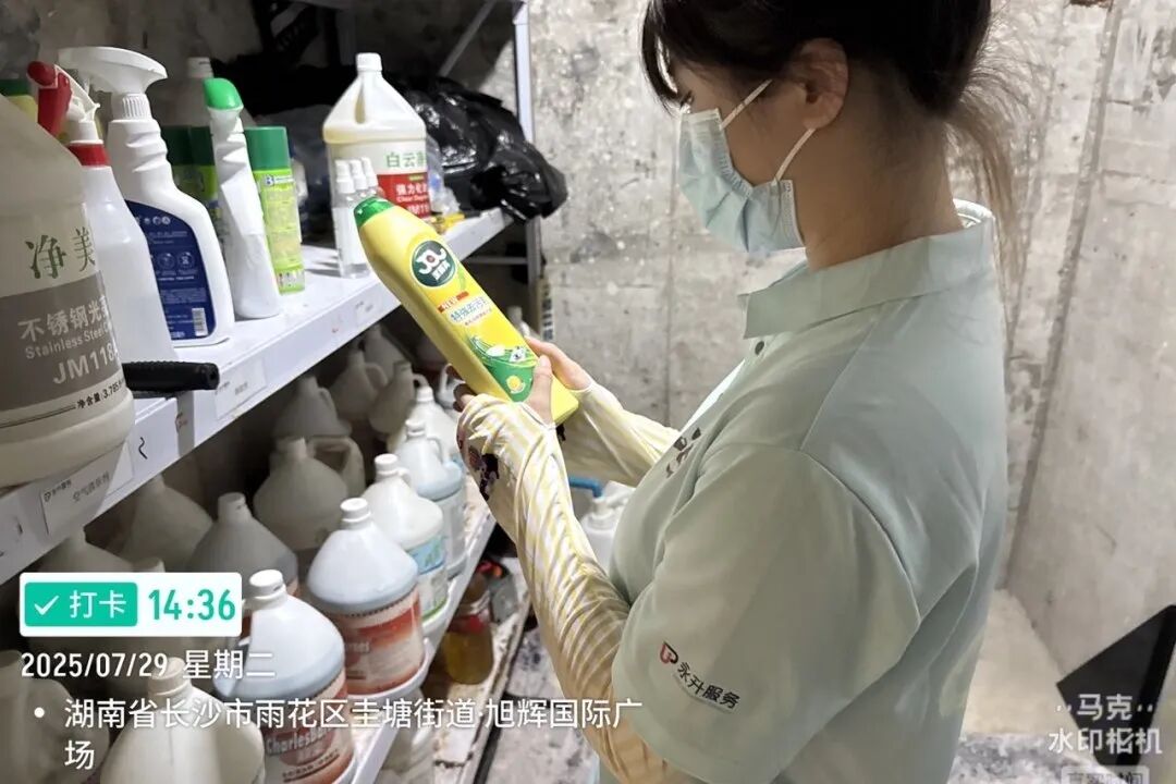 她的第二个“法宝”——班前必读,利用项目晨会的分享环节,刘紫韵筛选实用环境管理技巧,打印出来做成“班前必读”材料,与团队共同学习、举一反三。保洁李阿姨对此深有感触:“小刘找的方法实用!以前清理油污,用小苏打和洗洁精得费劲蹭半天,现在用她给的方法,两遍就干净了!”