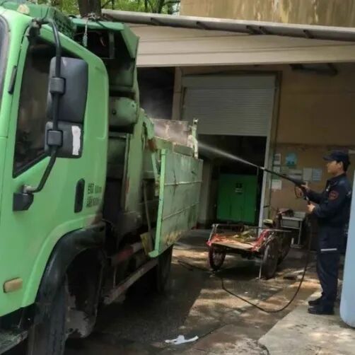 ➤垃圾房改造:永升服务入驻前,天山河畔花园小区已实行建筑垃圾集中堆放,但由于缺乏有效的防尘措施,在垃圾清运过程中产生的粉尘严重污染周边环境,导致公区空气质量下降,地面积尘明显,给业主日常生活带来诸多不便。针对这一环境顽疾,永升服务团队启动扬尘治理专项工作,通过安装喷淋系统,实现建筑垃圾清运前,清运中喷淋抑尘,清运后地面冲洗清洁,彻底解决了建筑垃圾厢房和附近公共区域的“扬尘污染”。