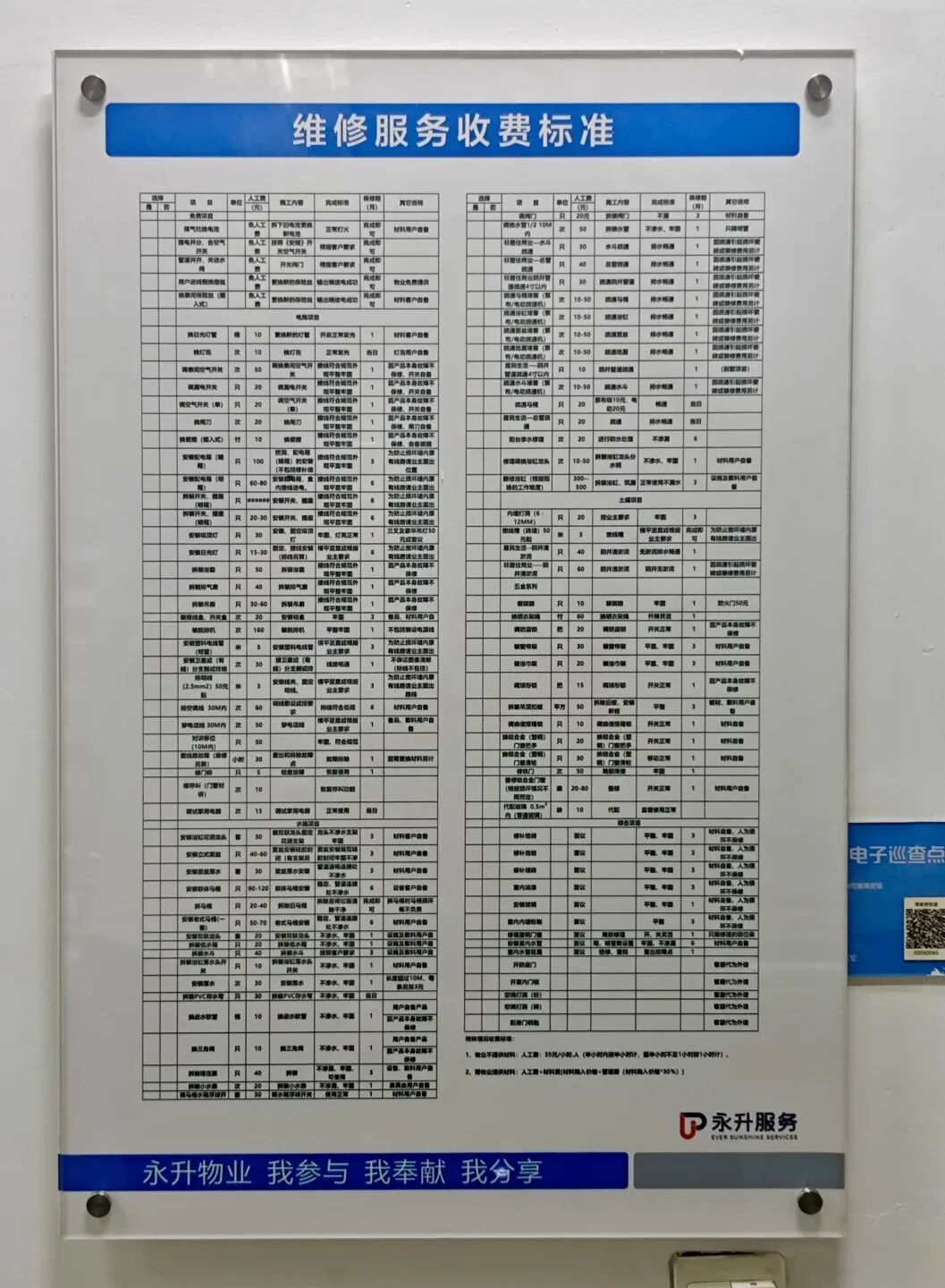 ➤公示资料规范透明:在小区物业服务中心,永升服务特别设置37℃空间阳光公示区,相比此前物业公示内容的残缺不全,永升服务进驻后,规范公示物业收费标准、收费项目,公益性收入、维修资金使用明细、酬金制项目相关报表,依法保障业主知情权,以透明化管理搭建信任桥梁。