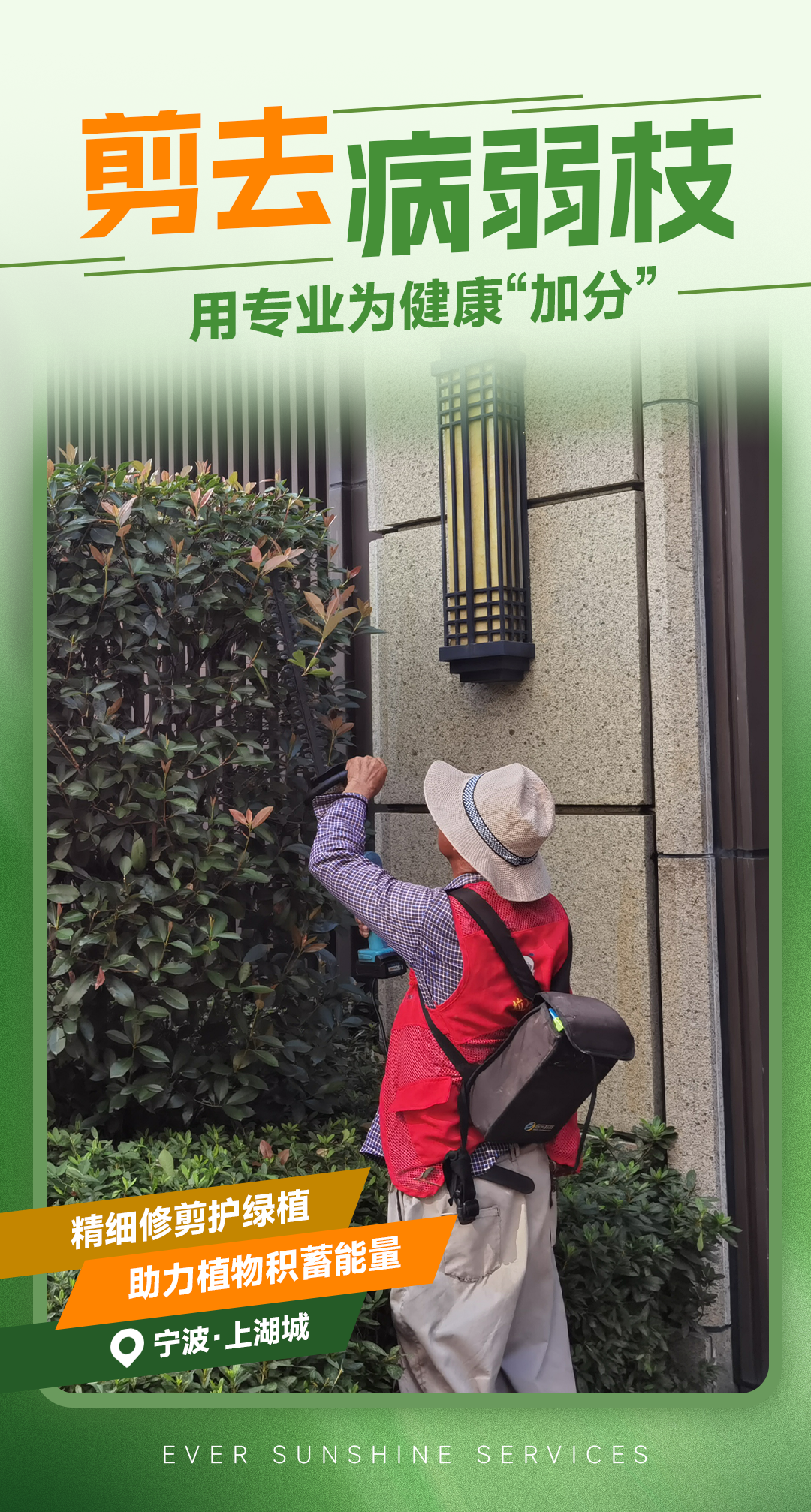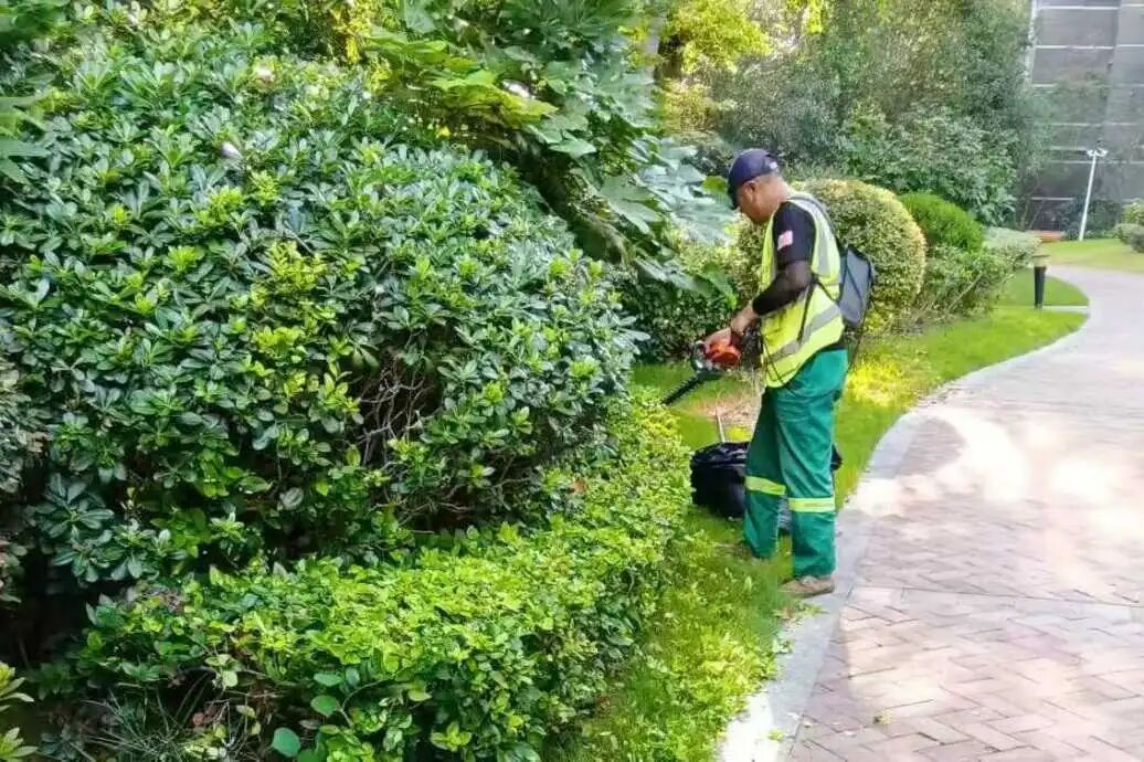 永升绿化工作人员就像绿植界的“tony”,在他们的一双手下,平平无奇的灌木,总能化腐朽为神奇;野蛮生长的乔木,也能重回生长秩序。一双双巧手背后,是永升对每株绿植认真对待的坚持,毕竟剪掉“负担”,才能留住绿意盎然。