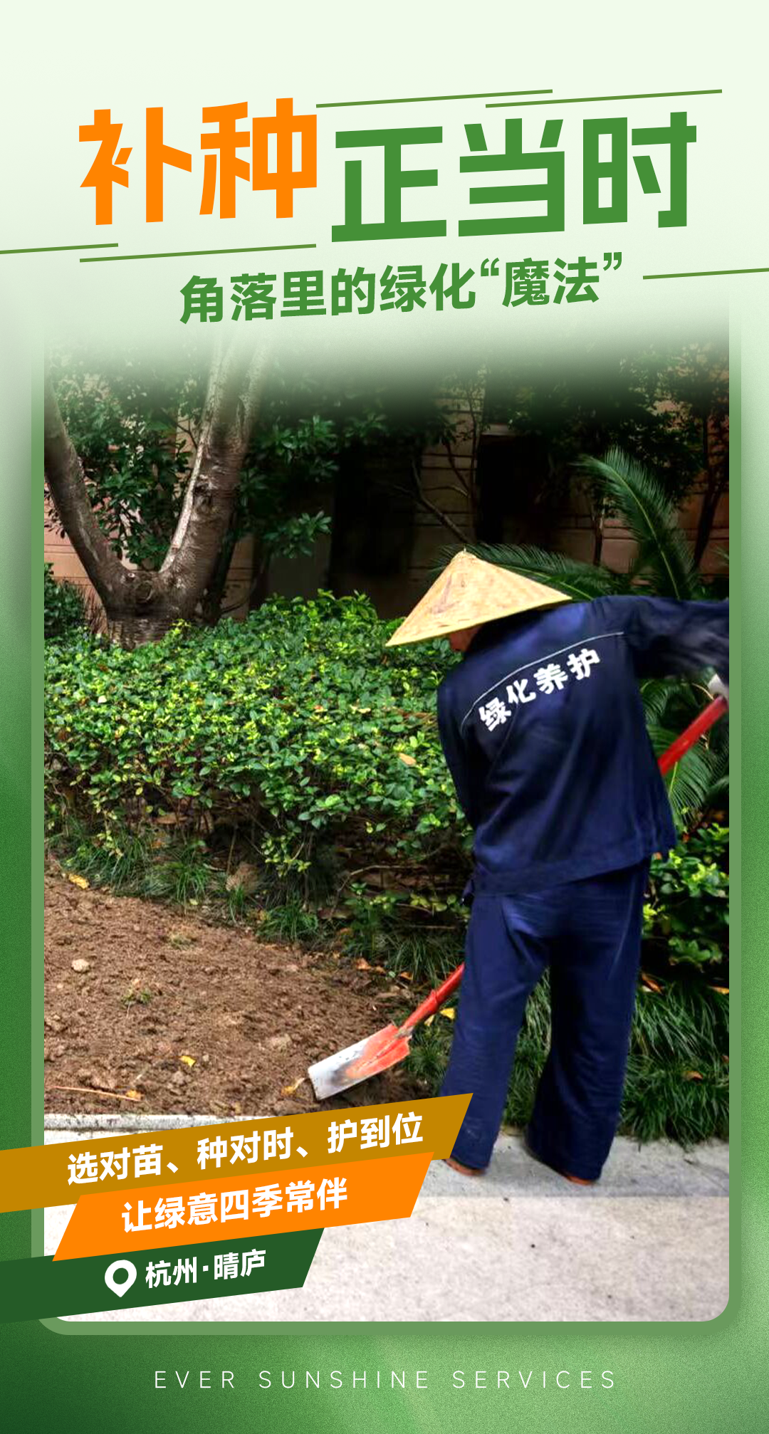 永升服务用专业证明,补种补栽不是简单“填坑”,而是让新绿真正“扎根”,让绿色无缝衔接,让生机再无死角。