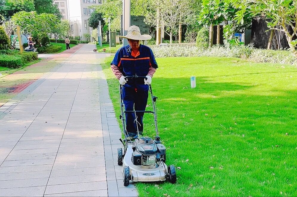 当金黄的树叶还在枝头摇曳,园区里的科学复播已悄然启动。永升绿化团队以旋耕-施肥-播种-镇压四步法则,在土壤中播下希望的种子。15-20天后,嫩绿的新芽将会破土而出,为园区披上秋日的新装,实现春有早绿,秋有晚翠的四季美景。不仅如此,园区草坪实行分区管理策略:阳光充足的区域高频低剪,促进草坪紧密生长;阴湿区域则低频高剪,避免潮湿引发的病害。