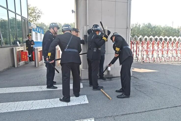 灭火组:秩序队员全副武装,熟练操作灭火器对准“火源”根部喷射,同时铺设消防水带模拟高压灭火,动作行云流水;