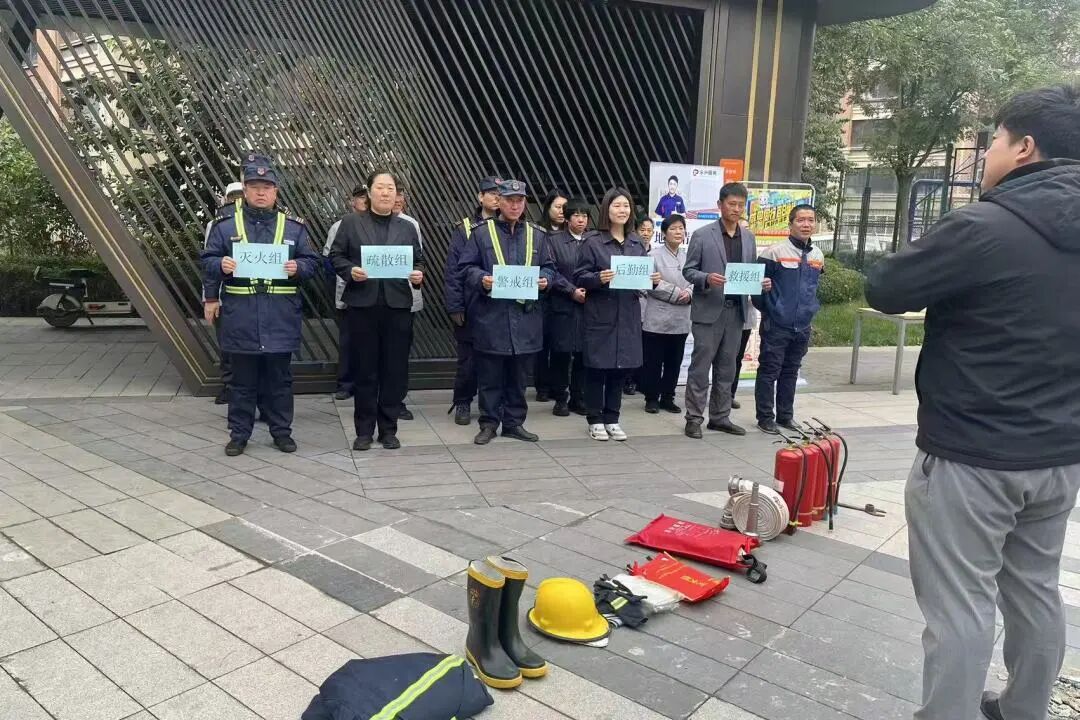 疏散组:客服人员化身“生命引导员”,手持扩音器、佩戴荧光标识,沿安全通道逐层引导业主弯腰低姿、有序撤离,3分钟内完成疏散;