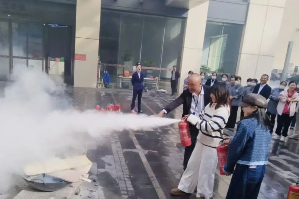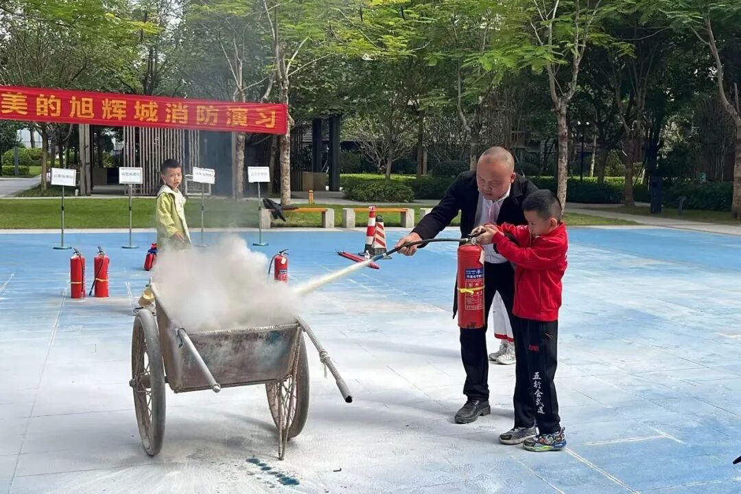 演练现场的“灭火实操区”,邀请客户、业主亲手操作学习使用灭火器,在专业指导下掌握“提、拔、握、压”四步法,让安全知识从“纸上”落到“手上”。
