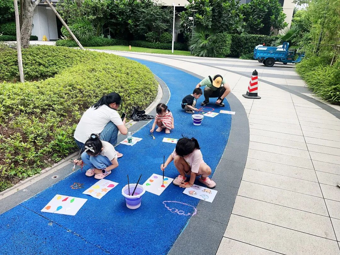 今年6月的社区跑道焕新,小业主们用五彩斑斓的颜料,绘出各式充满童趣的图案,这些充满童趣的表达,不仅为园区跑道增添了别样的色彩,更增强了居民对社区的归属感和认同感。