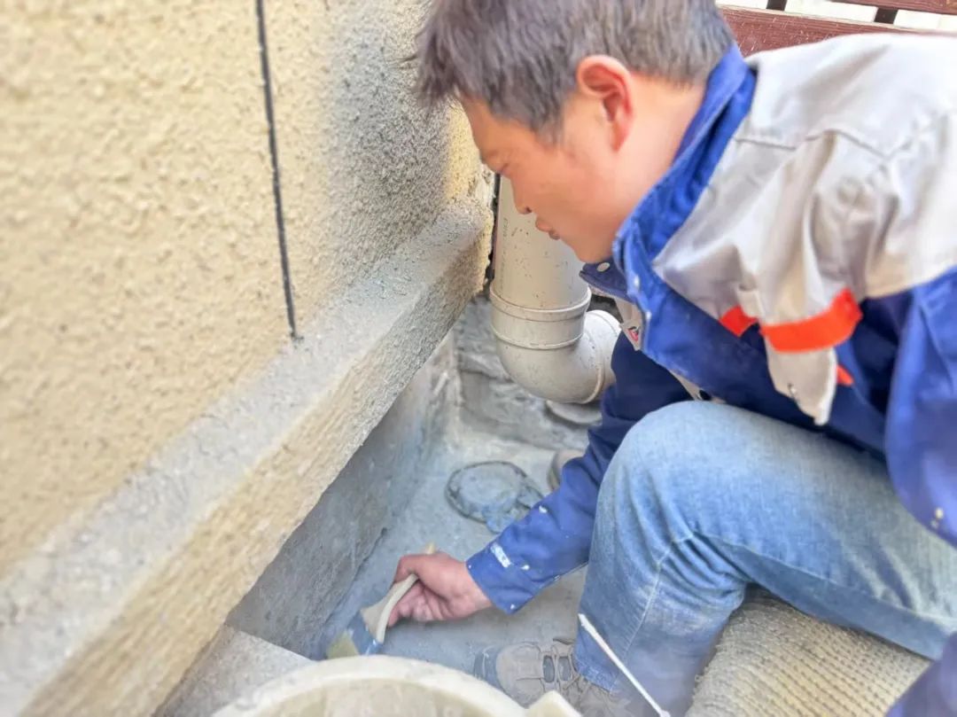 在骋望骊都小区排水系统改造攻坚战中,面对墙体内部雨水管道完全堵塞脱节的难题,李培打破传统破墙维修思维,带领团队测绘132个建筑节点,创新采用外墙明管铺设方案。选用耐候性PVC-U材质管道,以分段吊装与无缝焊接工艺,在百米高空织就新的“楼宇静脉”。7天昼夜奋战,既破解了楼顶积水渗漏困局,还为项目贡献了“零拆改、高效率”的创新服务实践案例。