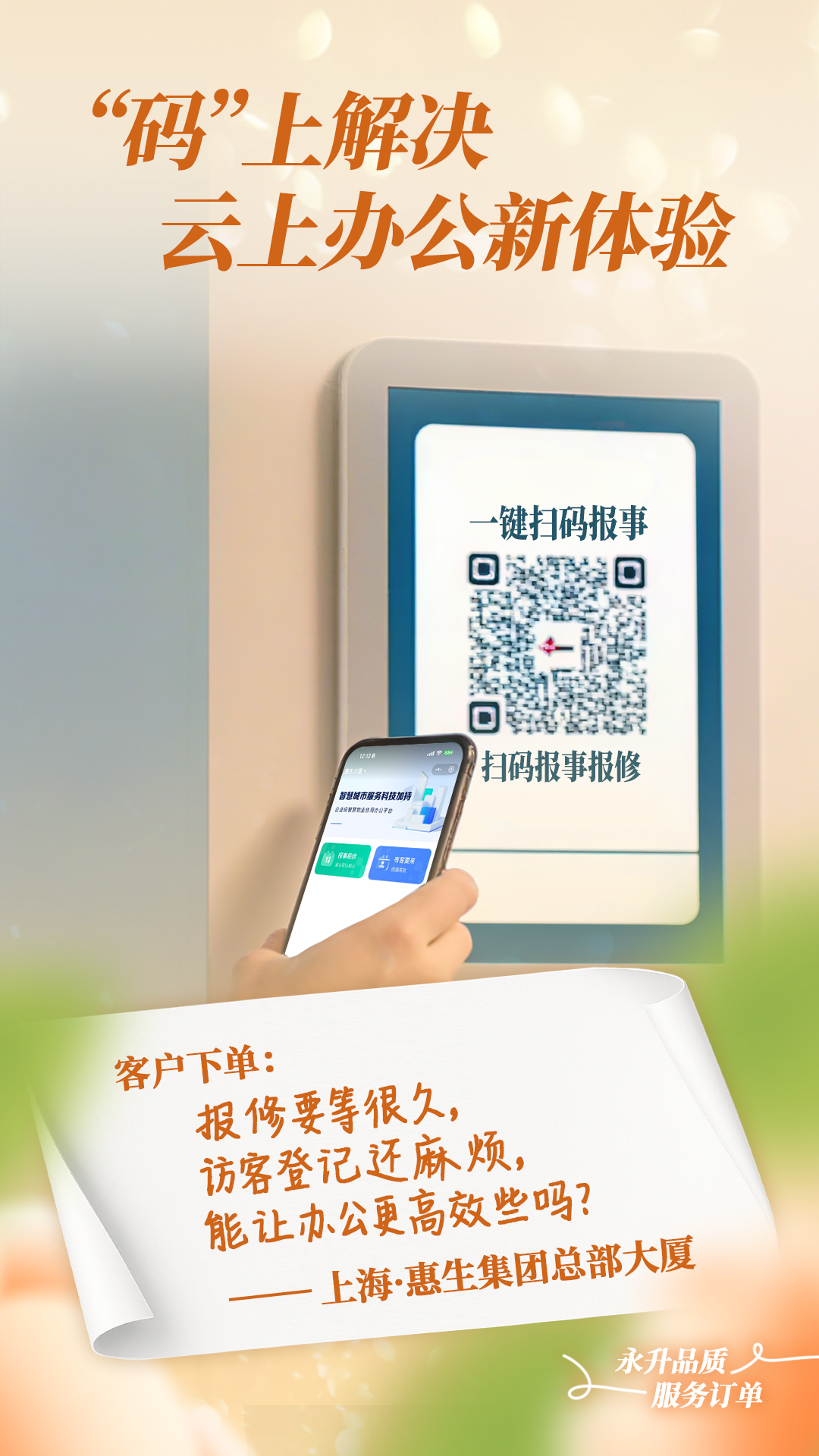 惠生集团总部大厦作为张江科学城地标,聚集大量高科技企业,但此前存在两大痛点:报事报修响应慢,客户难实时跟踪进度;访客登记流程繁琐,通行效率低且安全溯源难。